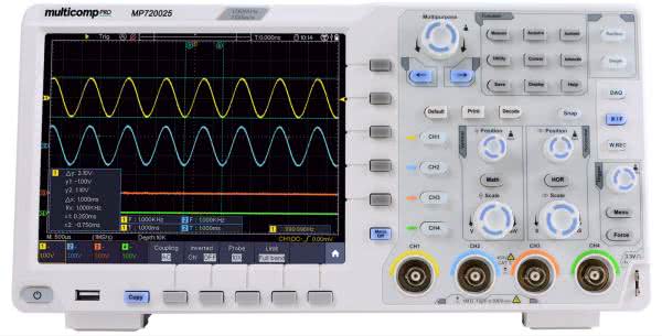 Spośród oscyloskopów o niewygórowanych parametrach warto wziąć pod uwagę przyrządy marki Multicomp Pro. W ofercie znajduje się wiele modeli o różnorodnych konfiguracjach.
