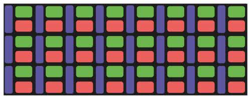 W przypadku wyświetlaczy kolorowych dla uzyskania obrazu o wysokiej jakości, ze względu na zróżnicowaną sprawność emisji kolorów składowych RGB, stosuje się różne kształty i powierzchnie struktur pikseli (np. S-Stripe Samsung, rysunek 5). Następnym etapem dynamicznego rozwoju wyświetlaczy LED, będą najprawdopodobniej układy Micro-Led i QD (Quantum Dot Display), napędzane rozwojem telewizji wysokiej rozdzielczości i zwiększeniem wymagań dotyczących wyświetlaczy urządzeń przenośnych.