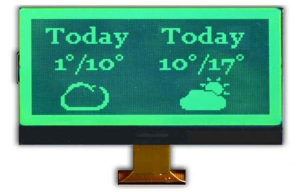 W handlu dostępne są monochromatyczne wyświetlacze graficzne o rozdzielczości od 128×64, np. STG12864BCD z kontrolerem SSD1603 znanym z wyświetlaczy OLED i komunikacji poprzez magistralę SPI, mogące zastąpić moduły STN LCD. Większe wyświetlacze produkowane są w zasadzie tylko na zamówienie i nie są dostępne jednostkowo. Przykładowy ekran 18” o rozdzielczości 800×600 pokazano na fotografii 4.