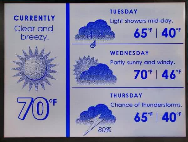 W wyświetlaczu e-paper trudno zastosować podświetlenie tylne, gdyż matryca przepuszcza tylko niewielkie ilości światła, konieczne jest podświetlenie krawędziowe lub przednie, przy grubości matrycy, w większości przypadków, znacznie poniżej 1 mm. Zapewnienie odpowiedniej jasności i równomierności podświetlenia jest sporym wyzwaniem inżynierskim, nie wspominając o problemach z podświetleniem matryc elastycznych. Oczywiście układ podświetlenia pobiera określoną moc i tak skonstruowany ekran raczej mistrzem energooszczędności nie zostanie. A w aplikacjach zewnętrznych, także wąski zakres temperatury pracy EPD, może wygenerować sporo problemów i to nie tylko w wyświetlaczach kolorowych. Przeważnie EPD specyfikowane są na temperatury pracy z zakresu 0...50°C, co przy zastosowaniach zewnętrznych w naszych warunkach wymaga, co najmniej systemu podgrzewania. Ekran EPD poniżej 0°C nie odmówi natychmiast współpracy, ale obniżenie temperatury spowalnia ruch pigmentów, co rodzi problemy z prawidłowym odświeżeniem ekranu. Przy niższych temperaturach odświeżenie ekranu staje się niemożliwe, pomimo sterowania elektrod, kapsułki pigmentu nie zmieniają swojego położenia – niestety nie mamy tutaj mechanizmu sprawdzającego poprawność ich położenia.