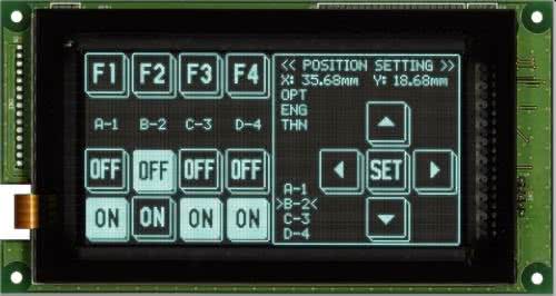 Wiodącym producentem jest Noritake-Itron oferujący moduły wyświetlaczy tekstowych, graficznych, zgodnych mechanicznie i mogących zastąpić o ile pozwoli na to źródło zasilania, klasyczne znakowe wyświetlacze LCD. Aby nadążyć za potrzebami rynku, wyświetlacze oferowane są z nakładkami klawiatury dotykowej np. seria GU-D oferując rozdzielczość 128×32 dla najmniejszego GU128×32D-D903S, aż do 256×128 dla GU256×128D-D903M pokazanego na fotografii 21. Dla ułatwienia integracji wyświetlacze wyposażone są w interfejsy I2C, SPI oraz port szeregowy UART, szczególnie w przydatny w aplikacjach kasowych POS (Point Of Sale), gdzie wyświetlacz może być podłączony bezpośrednio do terminala kasowego.