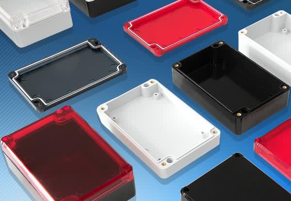 W podstawie obudowy są otwory do montażu na ścianie oraz kołki mocujące do płyty PCB. Standardowe kolory to RAL 9004 i RAL 7035. Obudowa dostępna w wersjach z wieczkami transparentnymi czerwonym, bezbarwnym lub dymnym. https://bit.ly/3emlLFy