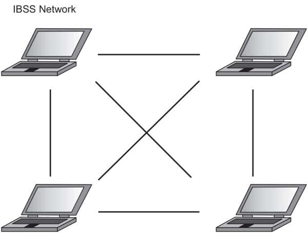 Tryb Ad Hoc odpowiada klasycznej sieci peer-to-peer i pozwala na tworzenie sieci radiowej wykorzystującej tylko komputery (urządzenia) wyposażone w interfejsy Wi-Fi. Taka topologia nazywana jest IBSS (Independent Basic Service Set). Każdy komputer może się komunikować bezpośrednio ze wszystkimi w sieci (rysunek 1).
