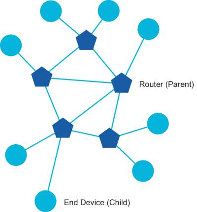 - Router ZigBee (ZR). Oprócz funkcji urządzenia końcowego router może pełnić rolę routera pośredniego, przesyłając dane pomiędzy innymi urządzeniami.