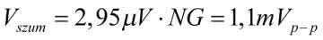Szum wejściowy wzmacniacza transimpedancyjnego jest mnożony przez wzmocnienie układu. Dla ADA4505-2 w zakresie od 0,1 Hz to 10 Hz wejściowy szum napięciowy wynosi 2,95 µVp-p, więc szum, obserwowany na wyjściu określa równanie 5:
