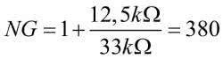 Rezystor R4 utrzymuje wzmocnienie szumów wzmacniacza transimpedancyjnego na rozsądnym poziomie. Wartość R4 jest kompromisem pomiędzy wielkością wzmocnienia szumu a błędem czasu ustalania czujnika po wystawieniu na wysokie stężenie gazu. Dla tego obwodu R4=33 Ω, co skutkuje wzrostem szumów o 380 V/V, jak pokazano na równaniu 4: