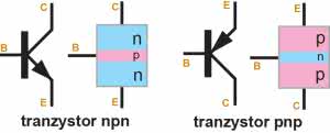 Trzeba też mocno podkreślić, że wynalezienie tranzystora bipolarnego – fotografia 1 – © Alcatel-Lucent USA Inc. w roku 1947 (Walter Brattain, John Bardeen, William Shockley) było przypadkiem i zaskoczeniem. Było to zdecydowanie bardziej odkrycie niż świadome wynalezienie. Celem tych badaczy wcale nie było stworzenie takiego właśnie trzywarstwowego elementu z dwoma złączami pn, wzmacniającego sygnały elektryczne. Ze zdziwieniem stwierdzili, że testowana dość specyficzna i dość skomplikowana struktura jest wzmacniaczem prądu. Rysunek 2 przypomina, jakie dziś wykorzystujemy symbole graficzne tranzystorów bipolarnych i jak przedstawiamy w uproszczeniu ich budowę.