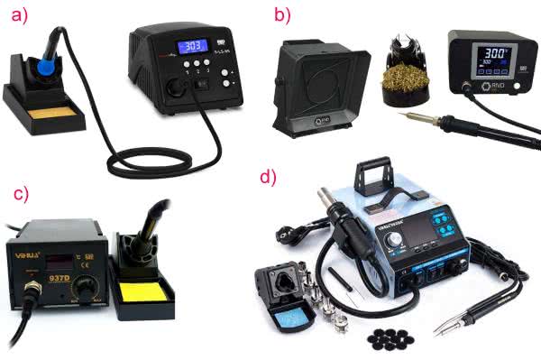 W zasadzie mówimy o stacji lutowniczej (fotografia 6), czyli zestawie składającym się z precyzyjnego sterownika, lutownicy i podstawki. Sterowniki są to obecnie najczęściej urządzenia zapewniające cyfrową regulację i stabilizację temperatury grota lutownicy, mogące pracować z kilkoma (zwykle 3) zaprogramowanymi temperaturami, wykrywające bezczynność lutownicy powodującą przejście do trybu spoczynkowego z obniżoną mocą i temperaturą grota. Takie działanie powoduje zauważalne wydłużenie jego żywotności. Programy są często zabezpieczane hasłem uniemożliwiającym nieautoryzowaną zmianę parametrów lutowania.