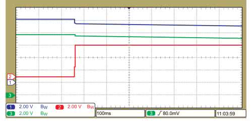 Efekty działania układu zostały pokazane na rysunku 14 (kanał 1 – napięcie na akumulatorze, kanał 2 – napięcie wyjściowe, kanał 3 – napięcie na dodatnim wyprowadzeniu „górnego” superkondensatora).