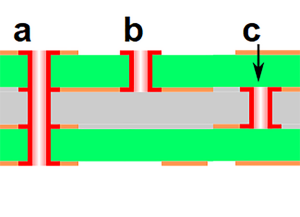 Klasyczne przelotki to otwory wykonane w płytce drukowanej na wylot, które są następnie wewnętrznie metalizowane, aby połączyć elektrycznie ze sobą wszystkie warstwy miedzi znajdujące się w linii otworu.