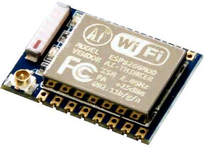 - Gniazda antenowe – wiele modułów występuje w wersjach bez wbudowanej anteny, za to z zamontowanym fabrycznie, miniaturowym gniazdem koncentrycznym typu u.FL. Rozwiązanie takie jest stosowane wszędzie tam, gdzie wymagania aplikacji uniemożliwiają lub wysoce utrudniają użycie wewnętrznej anteny – najlepszym przykładem mogą być urządzenia montowane w metalowych obudowach. Szeroka oferta dostępnych na rynku anten zewnętrznych z przewodem zakończonym wtykiem u.FL umożliwia niemal swobodny dobór odpowiedniego komponentu. W wielu przypadkach konstrukcja modułu Wi-Fi umożliwia skorzystanie z anteny wbudowanej lub zewnętrznej, podłączonej przewodem koncentrycznym – przykładem takiego hybrydowego rozwiązania jest pokazany na fotografii 5 moduł ESP-07.