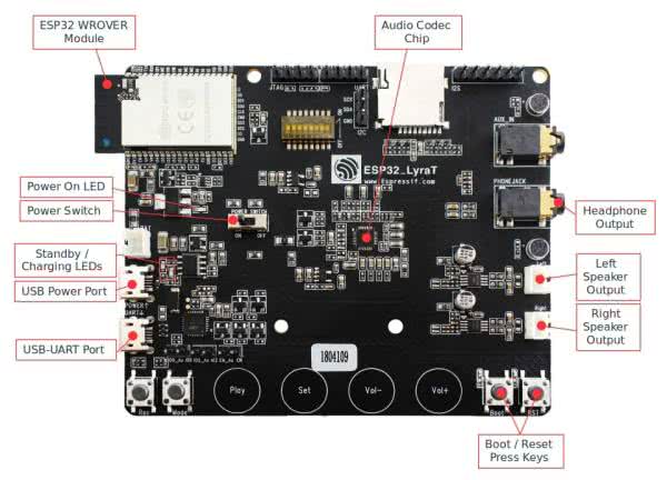 Najbardziej rozwiniętą serią produktów Espressif jest linia ESP32, korzystająca z pojedynczego lub podwójnego, 32-bitowego procesora Xtensa LX6 o taktowaniu od 80 do 240 MHz. Sztandarowy produkt z tej serii, moduł ESP32-WROVER-E oferuje nie tylko łączność Wi-Fi 802.11b/g/n (do 150 Mbps), ale także Bluetooth 4.2 i BLE. Płytka zawiera 4 MB pamięci Flash i 8 MB pamięci PSRAM, a co ciekawe, na pokładzie modułu znalazł się nawet... czujnik Halla. Podobnie, jak wiele innych współczesnych modułów Wi-Fi, także ten produkt oferuje dostęp do programowalnych linii GPIO, interfejsów UART, SPI, I2C, SDIO oraz I2S i TWAI, a nawet przetworników ADC/DAC, wyjść PWM oraz kanałów pojemnościowego kontrolera dotykowego. Co ważne, moduł silnie wspiera obsługę cyfrowego audio, co jest manifestowane w dostępności specjalnie do tego celu przeznaczonych zestawów ewaluacyjnych z serii LyraT (fotografia 8).