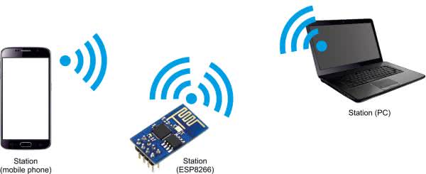 Tryb STA+AP umożliwia pracę modułu w sieciach typu mesh, w których każde urządzenie (węzeł) jest jednocześnie stacją i punktem dostępowym dla kolejnych urządzeń (rysunek 6). Tryb ten stosuje się rzadziej, daje on jednak sporą elastyczność w bardziej zaawansowanych aplikacjach, np. rozproszonych sieciach czujników czy też automatyce budynkowej.