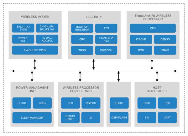 Kolejnym liczącym się graczem na szybko rozwijającym się rynku IoT jest Silicon Labs (Silicon Laboratories). Firma oferuje kilkanaście modułów i transceiverów Wi-Fi, z czego część obsługuje dwupasmowe łącze 2,4 GHz/5 GHz, niektóre są ponadto wyposażone we wbudowane interfejsy Ethernet, USB czy SDIO. Firma przykłada wagę do kompatybilności swoich produktów z czołowymi systemami operacyjnymi i platformami SBC, czego przejawem jest dostępność gotowych driverów linuksowych, w tym dla popularnych minikomputerów jednopłytkowych Raspberry Pi, dla których na stronie producenta można znaleźć noty aplikacyjne. Reprezentatywnym przykładem produktu z portfolio Silicon Labs jest rozbudowany moduł RS9116, obsługujący Wi-Fi 802.11a/b/g/n 2,4 GHz i 5 GHz oraz Bluetooth 5 w trybie dual mode (rysunek 10).