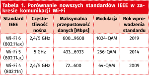 W tabeli 1 pokazano zestawienie trzech wiodących generacji Wi-Fi, wraz ze wskazaniem zakresów osiągalnych (teoretycznie) przepustowości. Zastosowanie coraz to bardziej rozbudowanych schematów kwadraturowej modulacji amplitudowo-fazowej QAM (rysunek 3) umożliwia znacznie gęstsze upakowanie danych poprzez podział na symbole o wyższej liczbie reprezentowanych przez nie bitów – w ciągu zaledwie 10 lat pojedynczy symbol z 6 bitów (dla modulacji QAM-64) przeszedł do 10 bitów (QAM-1024), co samo w sobie oznacza aż 16-krotny wzrost gęstości danych w strumieniu, a należy pamiętać, że zmiana rodzaju modulacji to niejedyna droga do zwiększania prędkości przepływu danych w sieci Wi-Fi.