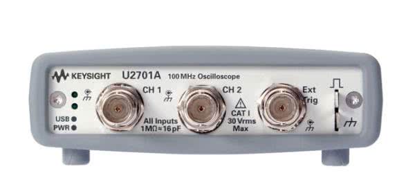 - 2-kanałowego oscyloskopu 14-bitowego z wejściami różnicowymi, oferującego próbkowanie 100 MSa/s i pasmo do 30 MHz,