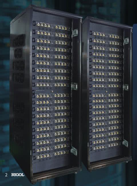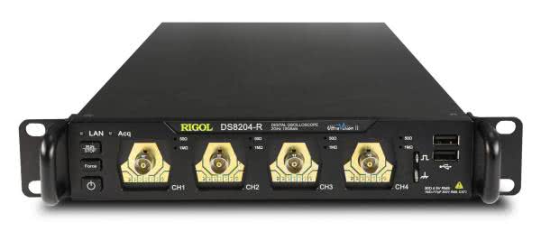 Najnowsza propozycja firmy Rigol – seria DS8000-R, obejmuje trzy modele wysokiej klasy oscyloskopów modułowych, które.... skutecznie wymykają się przedstawionemu wcześniej podziałowi na urządzenia pomiarowe ze zintegrowanym interfejsem HMI oraz urządzenia w formie przystawek. Rozwiązanie znanej chińskiej marki stoi dokładnie pośrodku, łącząc w sobie zalety obu tych typów przyrządów. Niskoprofilowa obudowa do montażu w szafach typu rack (fotografia 4) pozwala na zastosowanie w wielokanałowych systemach akwizycji danych (DAQ), zaś parametry sygnałowe zapewniają przepustowość nie ustępującą dobrym oscyloskopom biurkowym. Najniższy model DS8034-R oferuje prędkość próbkowania równą 5 GSa/s, zaś dwie pozostałe wersje aż 10 GSa/s. Maksymalna szybkość odświeżania to ponad 600 tysięcy ramek/sekundę, a pamięć próbek ma potężną pojemność aż 500 Mpts(!).