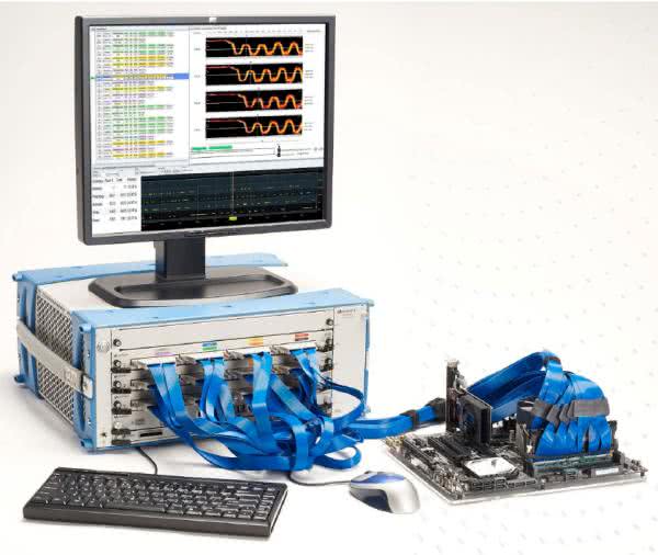 Wisienką na torcie będzie tu z pewnością system modułowy U4164A marki Keysight (fotografia 13), który może współpracować zarówno z zewnętrznym komputerem, jak i dedykowanym kontrolerem AXIe M9537A. Urządzenie umożliwia badanie sygnałów o przepływności 4 GB/s w 68 kanałach (tryb statyczny) oraz synchroniczną analizę danych (timing mode) do 10 GHz. System jest przeznaczony głównie do najbardziej wymagających aplikacji, np. bezpośredniego debuggowania ruchu na szynach szybkich pamięci DDR4, DDR5, LPDDR4 i LPDDR5.