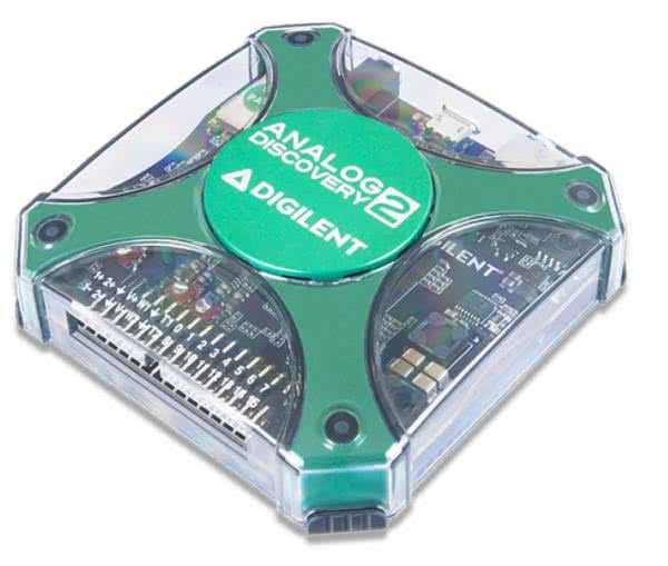 Marka Digilent w kooperacji z firmami Analog Deivces i Xilinx wprowadziła na rynek interesujące rozwiązanie, przeznaczone przede wszystkim (choć nie tylko) do celów akademickich. Analog Discovery 2 (fotografia 17) to niewielki kombajn pomiarowy, zapewniający funkcjonalność: