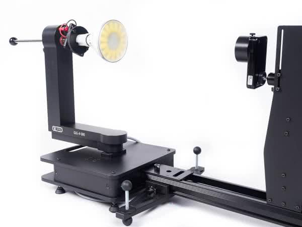 Pomiar kąta emisji jest bardzo prosty. Wykorzystuje się do tego luksomierze lub spektrometry zintegrowane z goniometrem. W dużym uproszczeniu jest to detektor światła o bardzo wąskim polu widzenia, który umieszczony jest na ruchomym ramieniu, co pozwala na pomiar natężenia światła lampy pod różnym kątem. Możliwe jest też obracanie samą lampą. Pozwala to na określenie kąta rozchodzenia się światła z tego źródła. Na fotografii 5 pokazano przykładowy goniofotometr, jaki wykorzystuje się do pomiaru rozkładu przestrzennego światła z lampy.