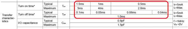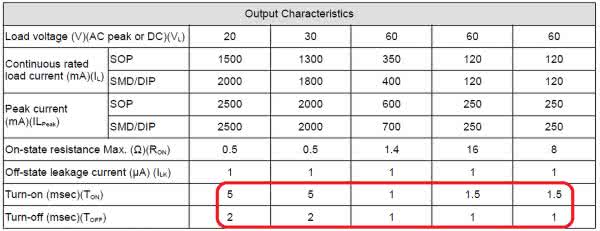 Nieco inaczej sprawa wygląda w przypadku podzespołów tego typu wykonanych na tranzystorach MOS. Otóż, w przeciwieństwie do przekaźników elektromagnetycznych, załączenie trwa dłużej niż wyłączenie lub trwają one tyle samo – dowodem niech będzie fragment noty katalogowej firmy ECE, który został pokazany na rysunku 6.