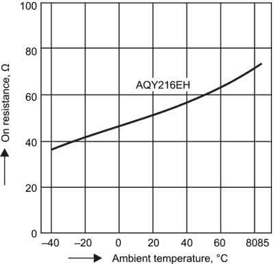 Teoretycznie można uwzględnić rezystancję otwarcia w toku obliczeń i dobrać rezystor R3 o odpowiednio mniejszej rezystancji, aby wypadkowa rezystancja całej tej gałęzi wynosiła 100 Ω. Teoretycznie, bowiem ten parametr silnie zależy od temperatury, na co wskazuje przykładowy wykres znajdujący się na rysunku 9. Nietrudno zauważyć, że układ zaprojektowany do pracy w temperaturze pokojowej, po otwarciu okna w upalne lato będzie działał już zupełnie inaczej.