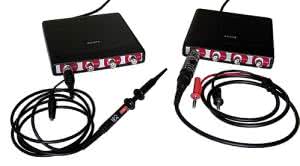 - softDSP - bardzo zgrabne i poręczne, a przy tym miniaturowe (mieszczą się na dłoni) przystawki USB przewidziane do pomiarów w terenie. Oscyloskopy te mierzą w paśmie do 200 MHz, jednak ze stosunkowo niewielką szybkością próbkowania: 100 MSa/s przy wykorzystywaniu 1 kanału i 50 MSa/s z aktywnymi dwoma kanałami. Próbkowanie przebiegów okresowych (w czasie ekwiwalentnym) przebiega z szybkością do 5 GSa/s. W oscyloskopach zastosowano 9-bitowe przetworniki.
