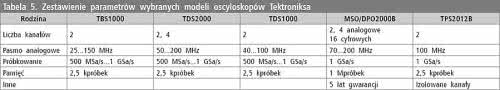 Tektronix stosuje w swoich wyrobach raczej krótkie rekordy, co jednak znajduje swoje korzystne odbicie w minimalizacji czasu martwego i nie zawsze jest wadą w porównaniu z oscyloskopami dysponującymi długim rekordem. Parametry wybranych modeli Tektroniksa zestawiono w tabeli 5, natomiast przykładowe oscyloskopy z rodziny TDS2000 pokazano na fotografii 16.