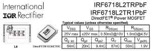Obecnie dostępne są MOSFET-y o rezystancji otwartego kanału poniżej 1 milioma (0,001 V). Rysunek 12 to przykład z oferty International Rectifier - MOSFET IRF6718L- 2TRPbF umieszczony w obudowie SMD o wymiarach 9 mm×7 mm×0,65 mm ma rezystancję kanału w stanie pełnego otwarcia - typowo - 0,5 mV (0,0005 V), maksymalnie 0,7 mV (przy UGS=10 V). Maksymalny prąd ciągły zależy od temperatury struktury - przy dobrym chłodzeniu może sięgać nawet 270 A!