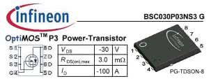 Jak wiadomo, tranzystory MOSFET z kanałem P mają gorsze parametry. Jednak dziś i one wykazują zaskakująco dobre właściwości. Na przykład 30-woltowy MOSFET P Infineon BSC030P03NS3G ma RDSon typowo 3 mV i może pracować przy prądach do 100 A - rysunek 14. Tymczasem bardzo popularny do dziś 100-woltowy MOSFET P typu IRF9540 ma RDSon do 117 mV.
