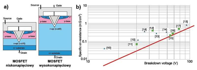 Owszem, współczesne tranzystory MOSFET, mając RDSon rzędu 1 milioma, w niektórych zastosowaniach są bliskie ideału. Dotyczy to zwłaszcza ich pracy w roli kluczy - przełączników pracujących przy niedużych napięciach i niedużych częstotliwościach. Ale gdy potrzebny jest MOSFET wysokonapięciowy, nie jest tak różowo - rezystancje RDSon są dużo większe.