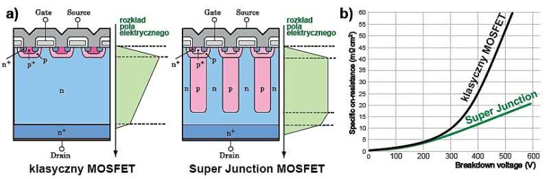 Okazuje się, że zmodyfikowanie wnętrza półprzewodnikowej struktury pozwala w istotny sposób poprawić właściwości MOSFET- ów wysokonapięciowych. Koncepcja nazywana Super Junction została opracowana w ostatnich latach XX wieku.