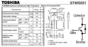 Zamykając temat IGBT można by jeszcze wspomnieć o tranzystorach IEGT (Injection- -Enhanced Gate Transistor), które mogą mieć jeszcze większe moce. Na razie nie są to popularne elementy. Rysunek 29 to fragmenty karty katalogowej wycofanego z oferty tranzystora IEGT Toshiba GT40Q321. Można z grubsza przyjąć, że w układach impulsowych przy napięciach do 400 V...600 V i prądach do 10 A wykorzystuje się MOSFET-y, a powyżej tych granic dominują tranzystory IGBT. Klasyczne tranzystory BJT w takich zastosowaniach straciły swoje znaczenie, głównie z uwagi na powolne wyłączanie i tzw. "ogon prądowy" (current tail), wynikający z konieczności usunięcia nośników z obszaru bazy.
