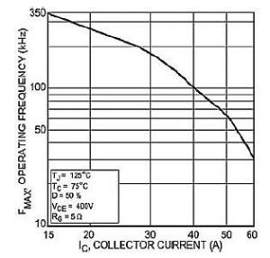 W zastosowaniach impulsowych kluczowe znaczenie mają parametry związane z szybkością włączania i wyłączania. Duża szybkość działania to podstawowy parametr w wielu zastosowaniach, a właśnie także w tranzystorach IGBT występują istotne ograniczenia częstotliwości przełączania do kilkudziesięciu kiloherców, najwyżej kilkuset kiloherców. Maksymalna częstotliwość jest też związana z prądem pracy, ponieważ im większy prąd (więcej nośników), tym dłuższe przełączanie i mniejsza jest maksymalna częstotliwość pracy. Ilustruje to rysunek 30.