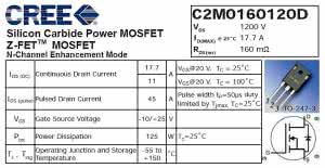 Od kilku lat dostępne są też tranzystory SiC normalnie zamknięte, czyli MOSFET-y SiC. Przykładem może być Cree C2M160120D o napięciu 1200 V, prądzie 17,7 A i typowej rezystancji RDSon=0,16 V - rysunek 51.