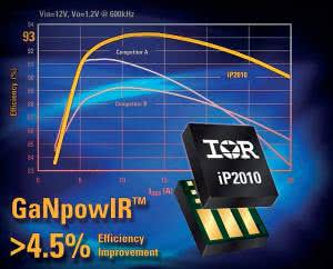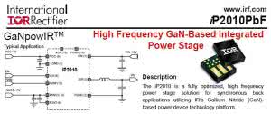 Przykładem wspomnianego wcześniej kaskodowego połączenia niskonapięciowego MOSFET-a i wysokonapięciowego JFET-a jest Transphorm TPH3006PD - rysunek 53. Na stronie firmy (http://goo.gl/lGcU2F) można znaleźć nieco więcej informacji. Jeszcze bardziej skomplikowane rozwiązanie proponuje International Rectifier z platformą GaNpowIR. Jest to realizacja heterostruktur GaN/AlGaN na podłożu krzemowym, wraz z układami sterującymi. Od kilku lat dużo się o tym mówi, a jak na razie jedyny element iP2010 to nie tylko pojedynczy normalnie włączony tranzystor GaN HEMT (enhancement mode), tylko cały wykonawczy układ mocy do przetwornic obniżających (Uwe=7...13,2 V, Uwy=0,5...6 V, 30 A), pracujący z częstotliwością do 3 MHz (wersja iP2011 do 5 MHz) - fotografia 54. Rysunek 55 pokazuje fragmenty (króciutkiej) karty katalogowej tego elementu, który na stronie producenta oznaczony jest jako... przestarzały. Dalszych informacji można poszukać na stronach http://goo.gl/gm1qPE, http://goo.gl/wuDcEw.
