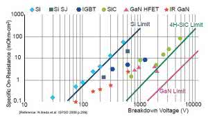 A więc można byłoby zbudować wysokonapięciowe tranzystory o bardzo małej rezystancji, ale miałby one niedopuszczalnie dużą pojemność wejściową i wymagany ładunek bramki (Qg), co przekreśliłoby możliwość ich szybkiego przełączania, a tranzystory wysokonapięciowe najczęściej tak właśnie pracują.