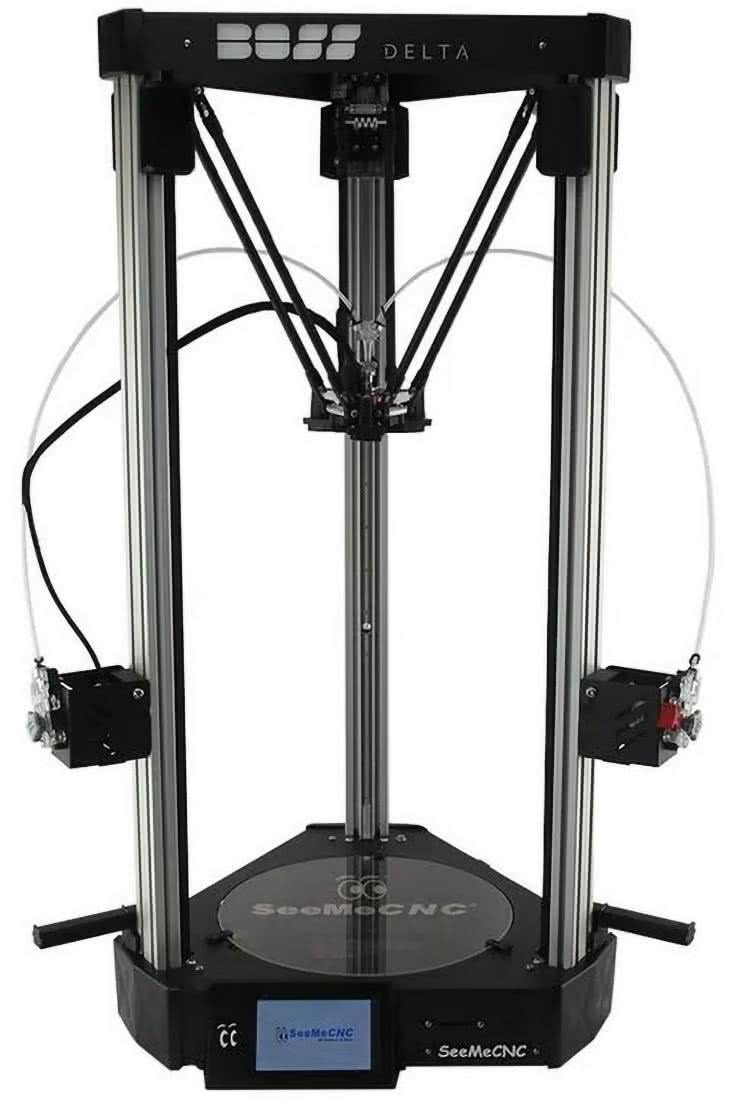 Warto też wspomnieć o drukarkach typu Delta (fotografia 7). W ich przypadku głowica umocowana jest na trzech ramionach, których drugie końce połączone są z trzema wózkami przemieszczającymi się wzdłuż pionowych prowadnic. Kontrolując odpowiednio wysokość każdego wózka, można umieścić głowicę w dowolnym punkcie nad (zwykle okrągłym) blatem. Konstrukcje tego typu kiedyś oferowały najwyższą prędkość druku i większą maksymalną wysokość obszaru roboczego, obecnie jednak zostały niemal całkowicie wyparte przez inne modele.