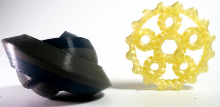 W porównaniu z opisanymi powyżej technologiami druk 3D wydaje się niezwykle wręcz prosty. Nie oznacza to jednak, iż metoda ta ma ograniczoną użyteczność. Jako proces addytywny pozwala bowiem uzyskać bardzo skomplikowane kształty bez ciągłej zmiany orientacji elementu czy zmiany używanego narzędzia i bez przekładania detalu między różnymi maszynami. Unikalną zaletę druku 3D stanowi też możliwość wykonywania części, które tkwią wewnątrz innych elementów – na portalach udostępniających modele do druku 3D nie brakuje takich właśnie projektów. Przykładem mogą być różne zabawki typu fidget – choćby przekładnie planetarne, których nie da się rozebrać. Fotografia 2 ukazuje dwa modele: brelok złożony z koncentrycznych pierścieni, zdolnych do obracania się względem siebie – oraz przekładnię planetarną, która też zyskuje ruchomość (ale nie rozpada się mimo braku wspólnej bazy utrzymującej poszczególne elementy) dzięki specjalnemu profilowi zębów.