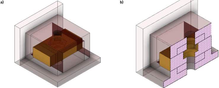 Nie bierzemy pod uwagę czasu drukowania ani liczby elementów, z których będzie wykonana obudowa – to nie produkcja wielkoseryjna, gdzie liczy się każdy gram i każda sekunda. Zresztą w przypadku produkcji wielkoseryjnej zakłada się, że obudowa tworzywowa będzie wykonywana na wtryskarce, nie na drukarce 3D. W tym przypadku wytrzymałość materiału jest taka sama w każdej płaszczyźnie, ale zbyt skomplikowane kształty trzeba wykonać z większej liczby elementów lub z nich całkowicie zrezygnować. Najprościej zrozumieć tę różnicę, patrząc na modele przeznaczone do druku 3D z takich stron, jak na przykład Printables (https://www.printables.com) czy Thingiverse (https://www.thingiverse.com) i porównując je z zabawkami, obudowami fabrycznych urządzeń czy z przedmiotami codziennego użytku. Standardem w przypadku urządzeń jest obudowa składająca z dwóch części skręconych lub spiętych razem, przy czym projektant bardzo się postarał, by nie było żadnych wypukłości czy wgłębień, które wymagałyby formy składającej się z więcej niż dwóch elementów. Jeśli kształt jest bardziej złożony, to najczęściej wykonany jest z większej liczby elementów, gdyż dwie lub trzy proste formy wtryskowe są dużo tańsze od jednej, wieloczęściowej formy z dodatkowymi suwakami.