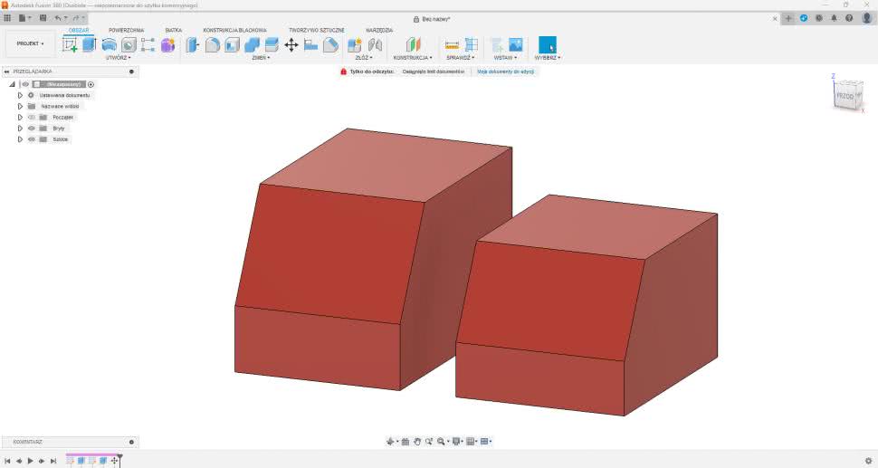 Obudowa powinna być proporcjonalna i mieć raczej prostą bryłę. Druk 3D pozwala na tworzenie dość fantazyjnych, złożonych kształtów, ale my projektujemy obudowę urządzenia do warsztatu, a nie małe dzieło sztuki – stąd prosta, niemal brutalistyczna, utylitarna forma. Obowiązują nas też trzy ograniczenia: